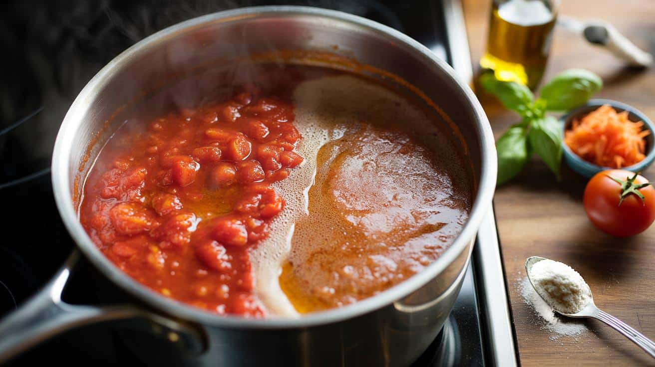 That idea – rescue, not rewrite – is the line to hold in your own kitchen. Use baking soda as an emergency lever when the tomatoes are just wildly out of control. When they’re only slightly testy, reach for patience and technique first. A lid half-on to trap steam, a stir every few minutes, and time doing its slow work. The sauce thickens, sugars concentrate, acids mellow naturally. You’ll taste more layers. The colour will stay confident.